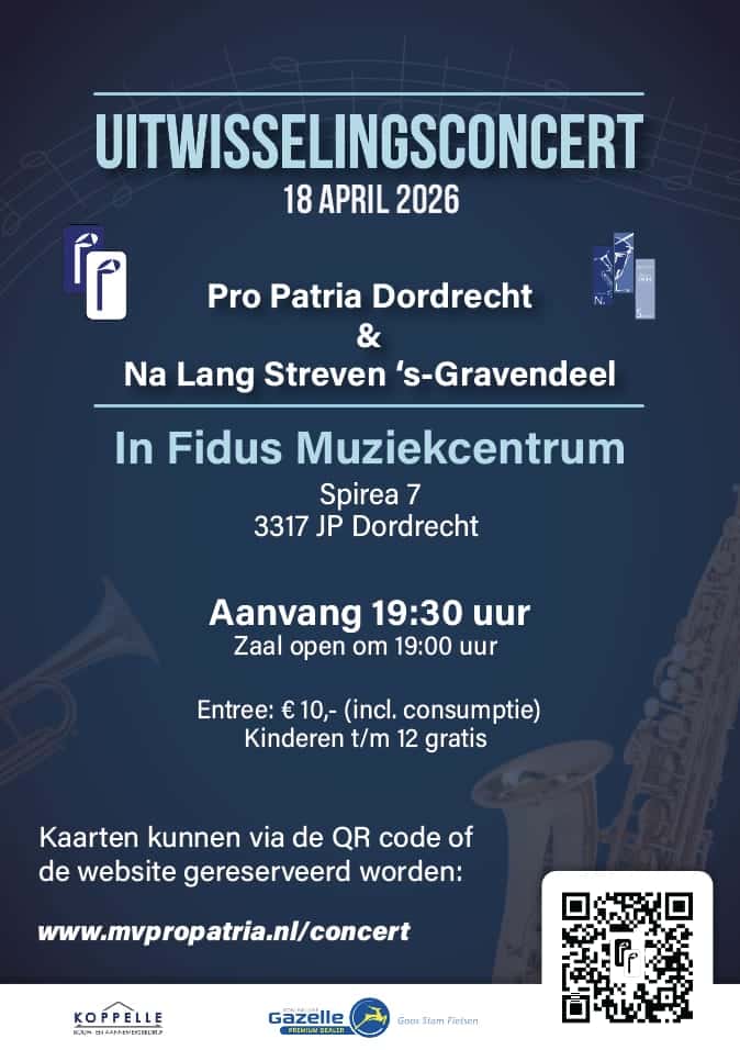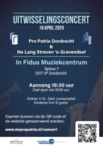 Op zaterdag 18 april 2026 zijn onze muzikale collega’s van fanfare Na Lang Streven uit ‘s-Gravendeel onze gasten. We gaan samen met hen een gevarieerd muzikaal programma brengen in het FIDUS Muziekcentrum. Voor meer informatie en en bestellen van toegangskaarten klik hier